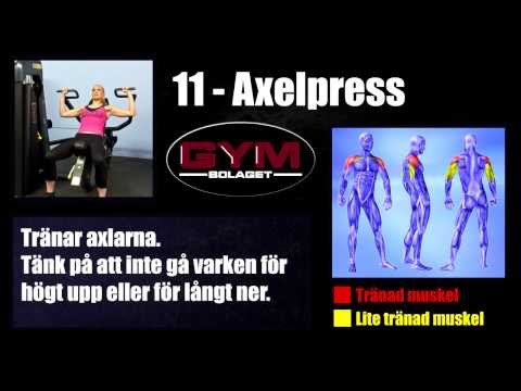 Nu är det inte denna jag kör axelpress i då filmerna inte är filmade från mitt gym. Den "maskin" jag kör i är från Hammer och fria vikter används. I den sitter man även mer upprätt (mindre bröst).